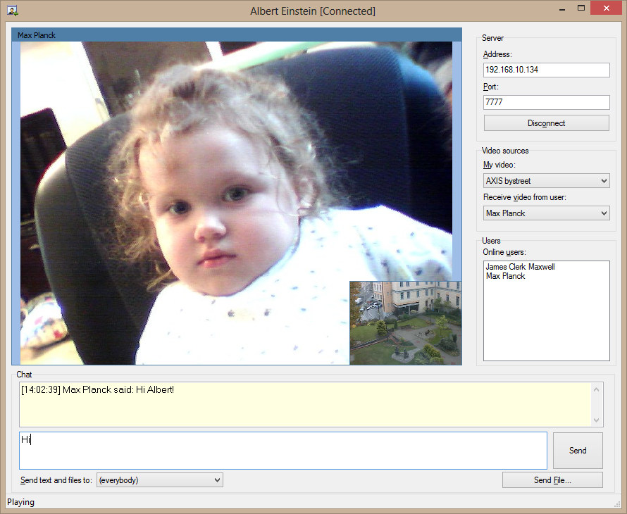 Исходный код примера находится в инсталляции RVMedia в каталоге: ClientServer\VideoChats\Chat\