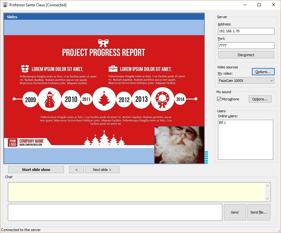 - пользовательский источник видео (слайды берутся из файлов и передаются как видео)