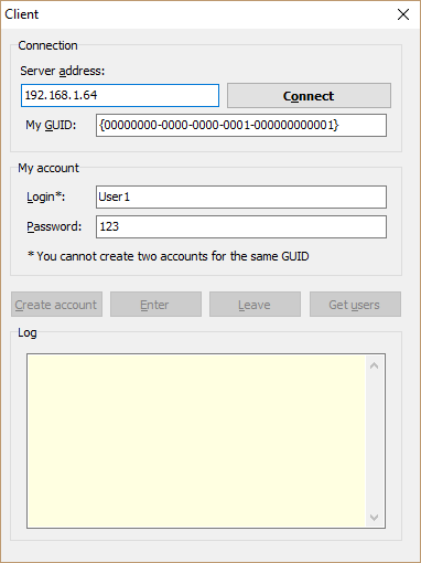Мессенджер подключается используя одну из заранее заданных учётных записей (состоящих из имени и идентификатора)