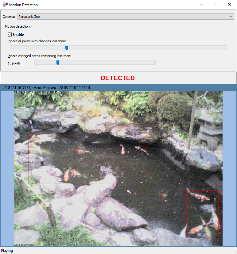 - области обнаружения движения: кадр делится на области, и изменения определяется в каждой из областей отдельно;