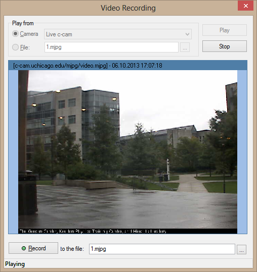 Пример демонстрирует запись видео в файл MJPEG и проигрывание видео из этого файла.