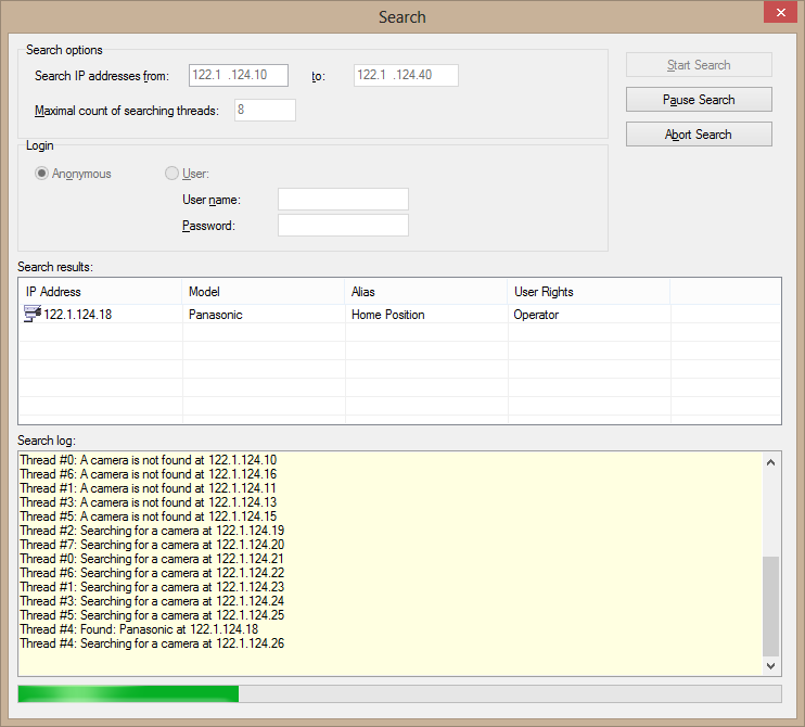 Пример ищет камеры в заданном диапазоне IP-адресов.