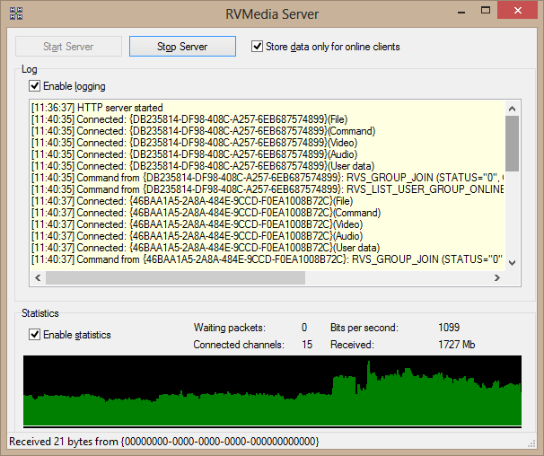 Исходный код примера находится в инсталляции RVMedia в каталоге: ClientServer\VideoChats\Server\