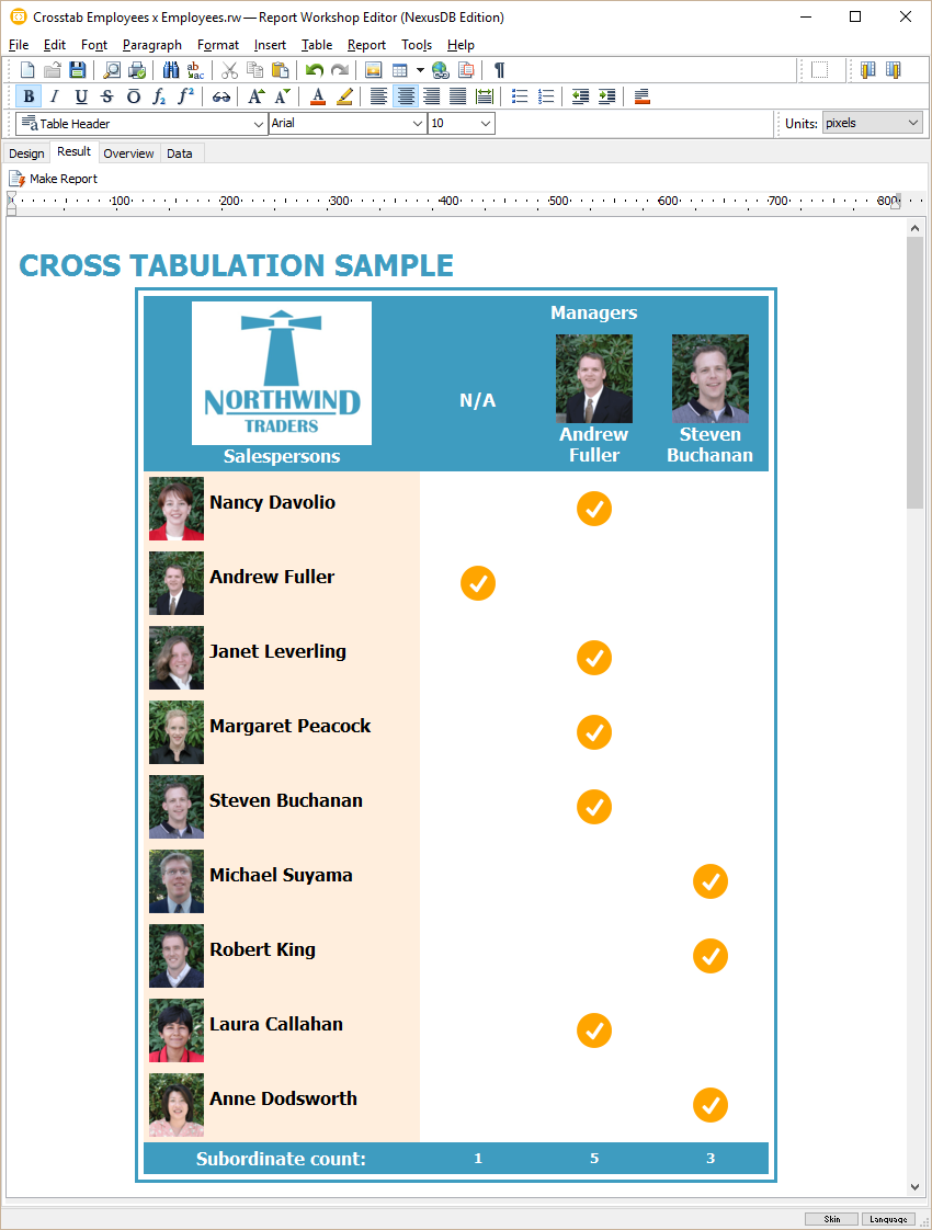 Report Workshop может создавать сводные таблицы со следующими свойствами:
