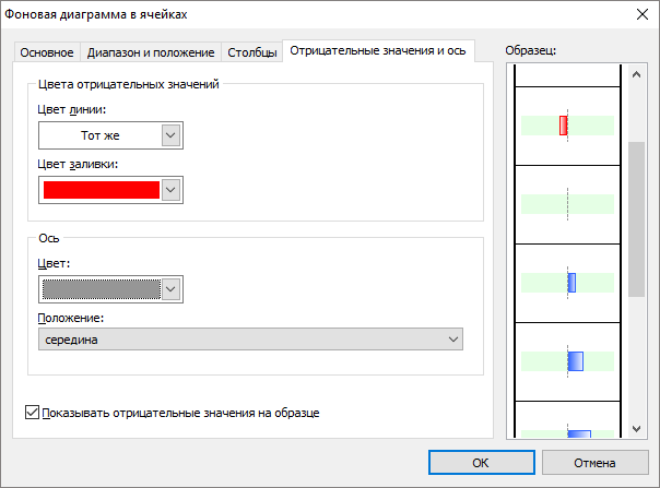Диаграммы показываются поверх фона ячеек, но под их содержимым. Если у ячейки есть обычное фоновое изображение, то диаграмма рисуется поверх него.
